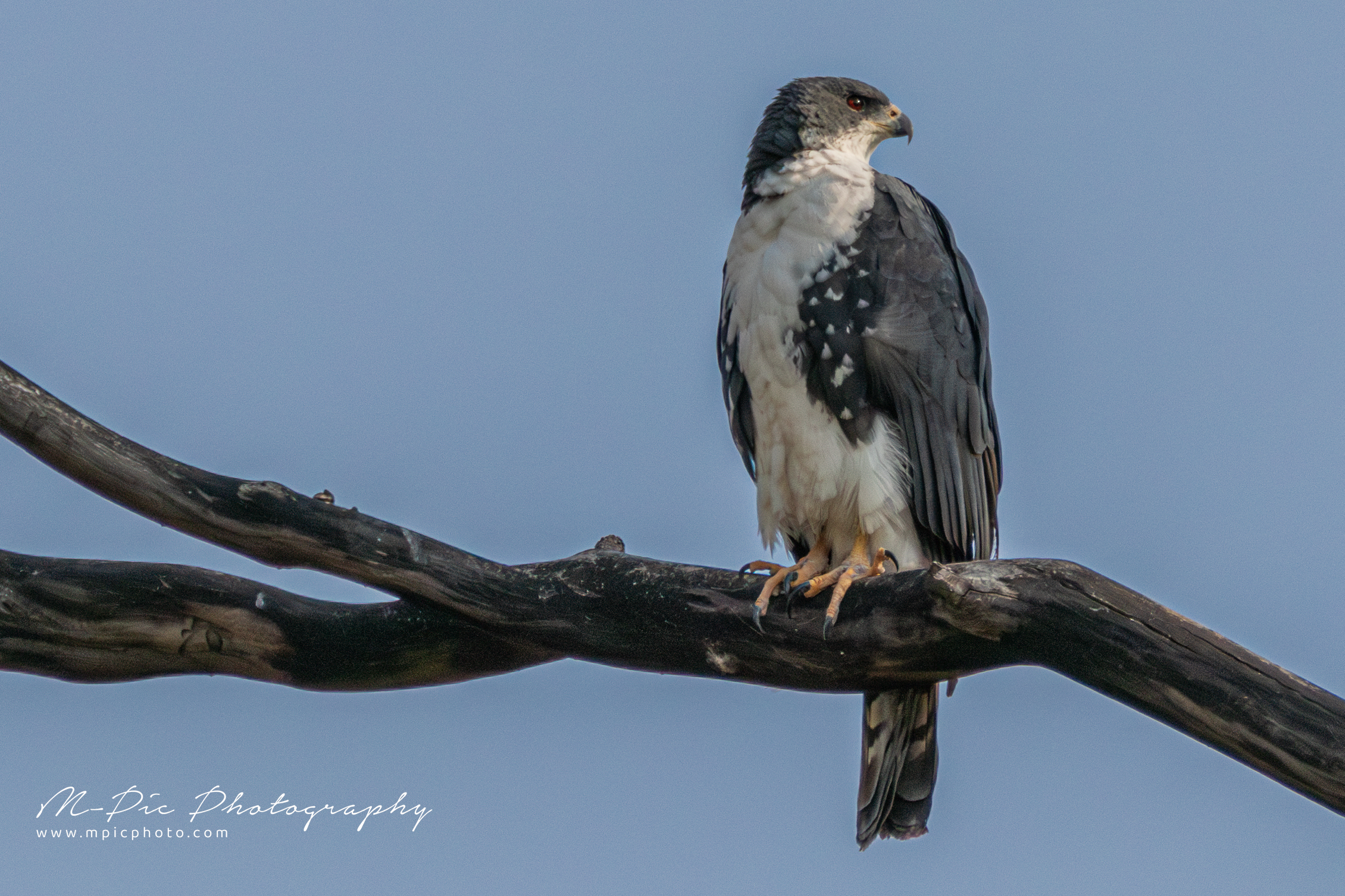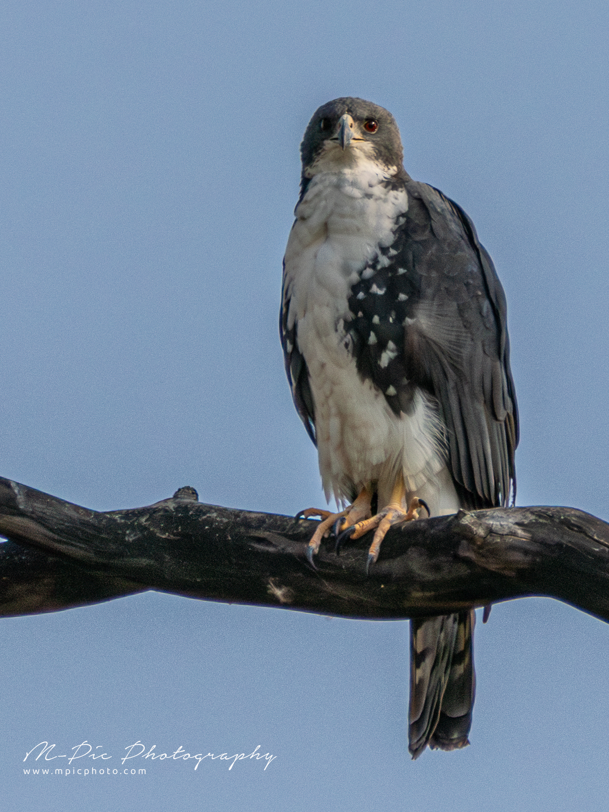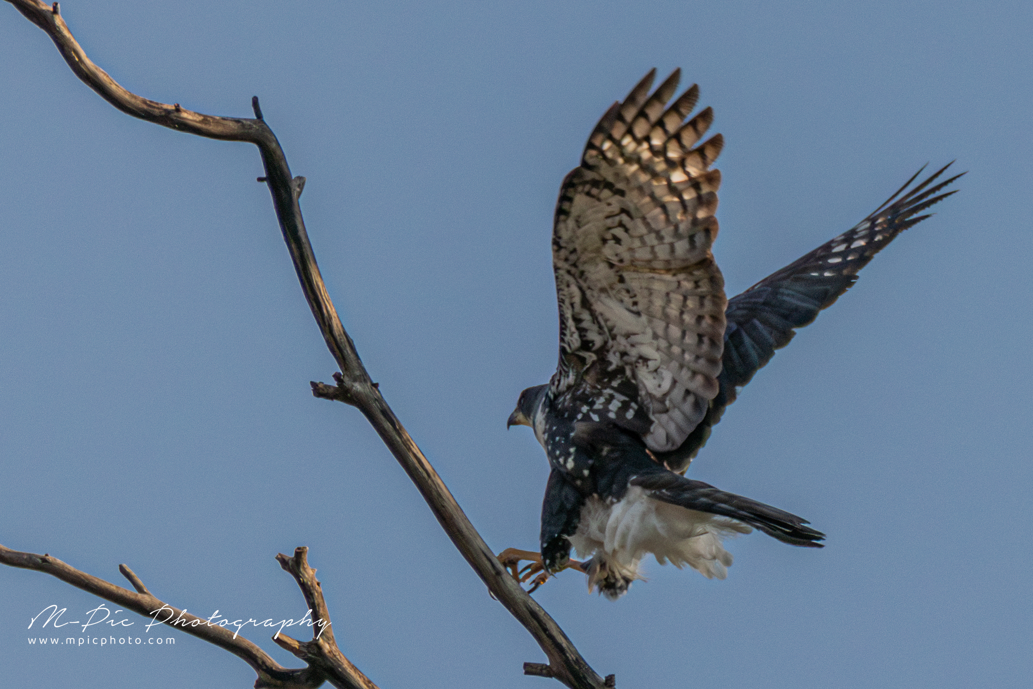 The Black Sparrowhawk (Accipiter melanoleucus), also known as the Black Goshawk or Great Sparrowhawk is the largest species of True Hawk in Africa. They are mainly found in forest and non-desert areas south of the Sahara, particularly where there are large trees suitable for nesting. Habitat includes suburban and human-altered landscapes. They prey predominantly on birds such as pigeons and doves, in suburban areas.