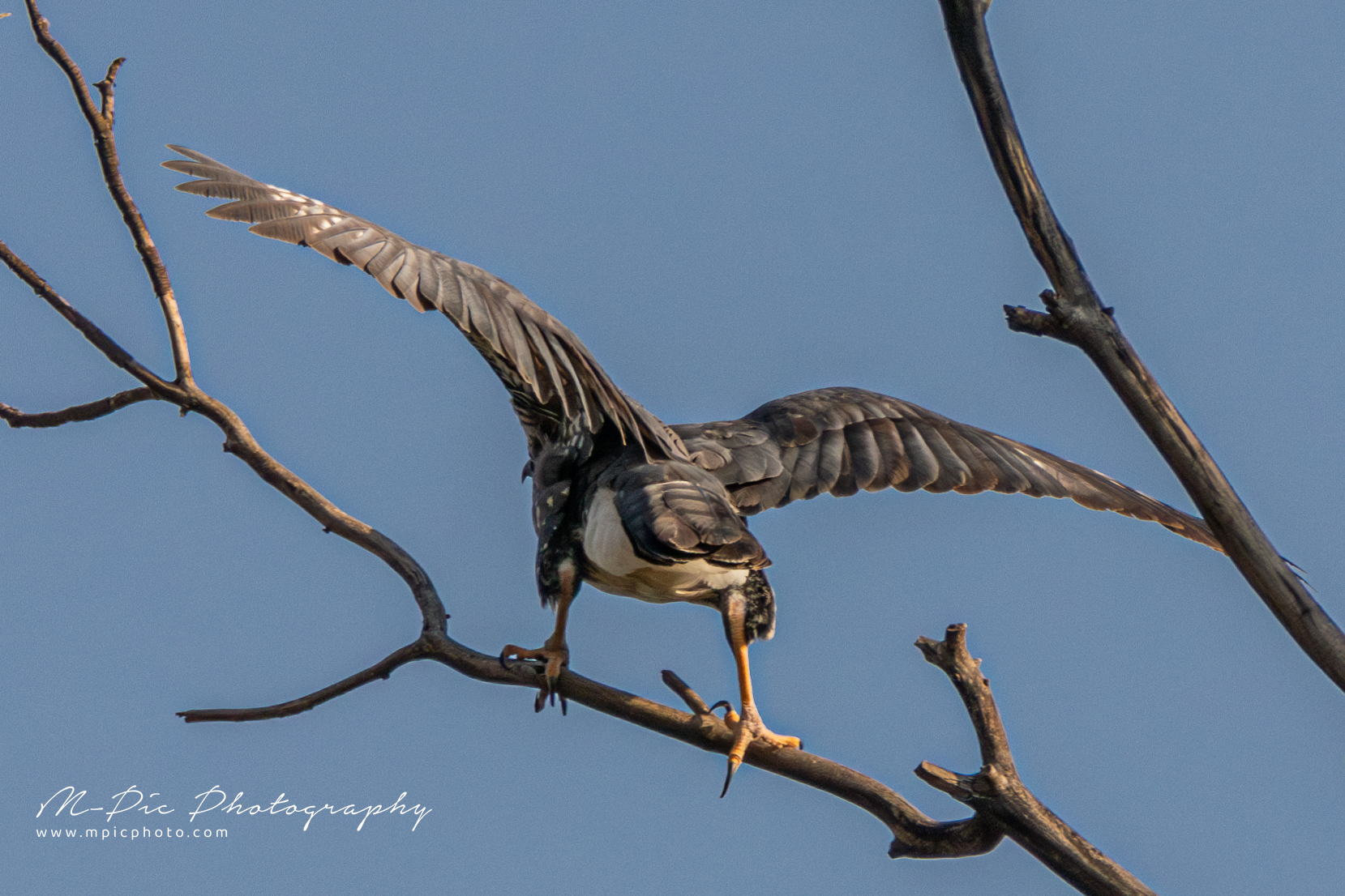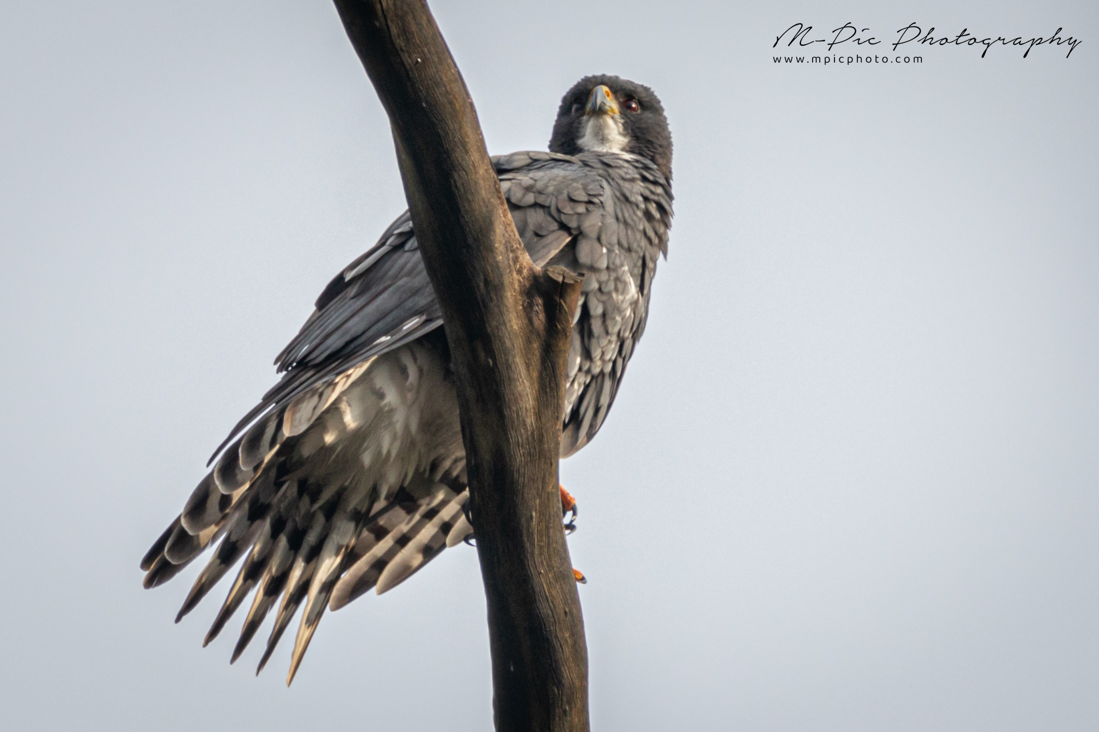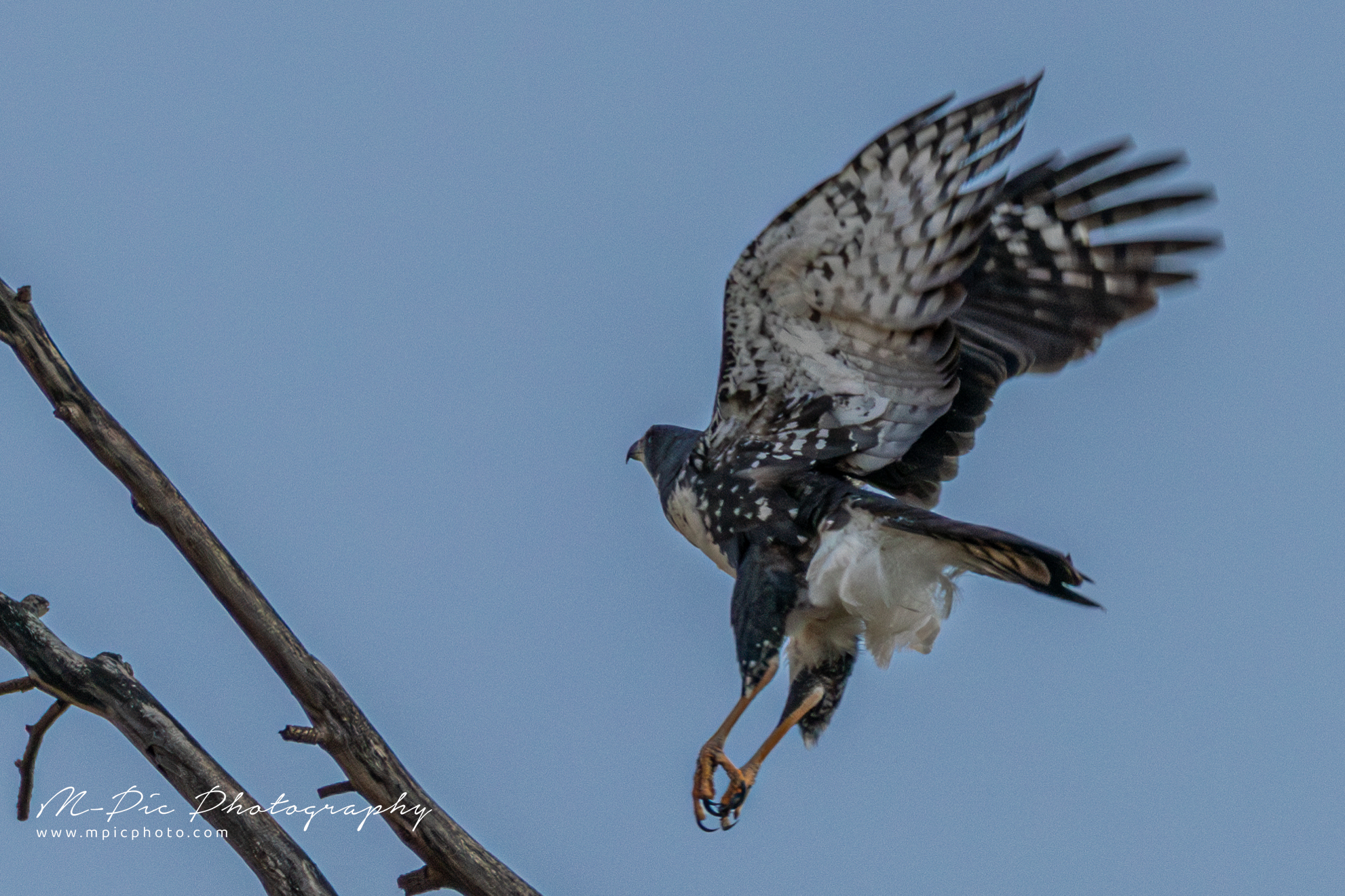 The Black Sparrowhawk (Accipiter melanoleucus), also known as the Black Goshawk or Great Sparrowhawk is the largest species of True Hawk in Africa. They are mainly found in forest and non-desert areas south of the Sahara, particularly where there are large trees suitable for nesting. Habitat includes suburban and human-altered landscapes. They prey predominantly on birds such as pigeons and doves, in suburban areas.